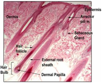 Hair grows in CYCLES that do not coincide with one another. This cycle is a constant growing and shedding of all hair on your body. Each individual hair then goes through four specific stages of growth. The follicle with a growing hair is in the ANAGEN stage. Anagen growth (when not cut off) can be seen as hair with a soft tapered ends. It can be 2 to 5 millimeters deep and can grow to be several feet in length as seen in scalp hair. The length of anagen hair growth is determined by genetics and health. The second stage of the cycle is CATAGEN, a short transition period when the hair stops growing, stops producing pigment and releases from the papilla in preparation to shed from the follicle. As catagen comes to an end, the root sheath rises in the follicle and forms a "collar" around the hair - sometimes called a "club" hair. Severe stress and environmental factors such as hormones, medications and trauma can cause hair to transition to the catagen stage. The third stage of a hair's life is TELOGEN where the follicle is shallow, but the hair may still be sitting in the skin as a "club" hair. A hair in telogen can sit on the skin for months before shedding. The shedding stage is called EXOGEN.