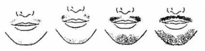 Excess hair growth on a woman's face usually begins with a few coarse hairs on the chin or upper lip. Some women will never have hair growth increase past the Grade 1 shown below, while other women will advance to Grade 4 over time. The length of time for electrolysis treatments to be completed will depend entirely on how much hair "Mother Nature" has destined for you to grow. One person can be finished with their treatments in 6 to 9 months while another person can take 18 to 24 months or longer. If you start electrolysis in Grade 1, but are destined to be Grade 4 (without intervention) then you might seek electrolysis treatments throughout the rest of your life.